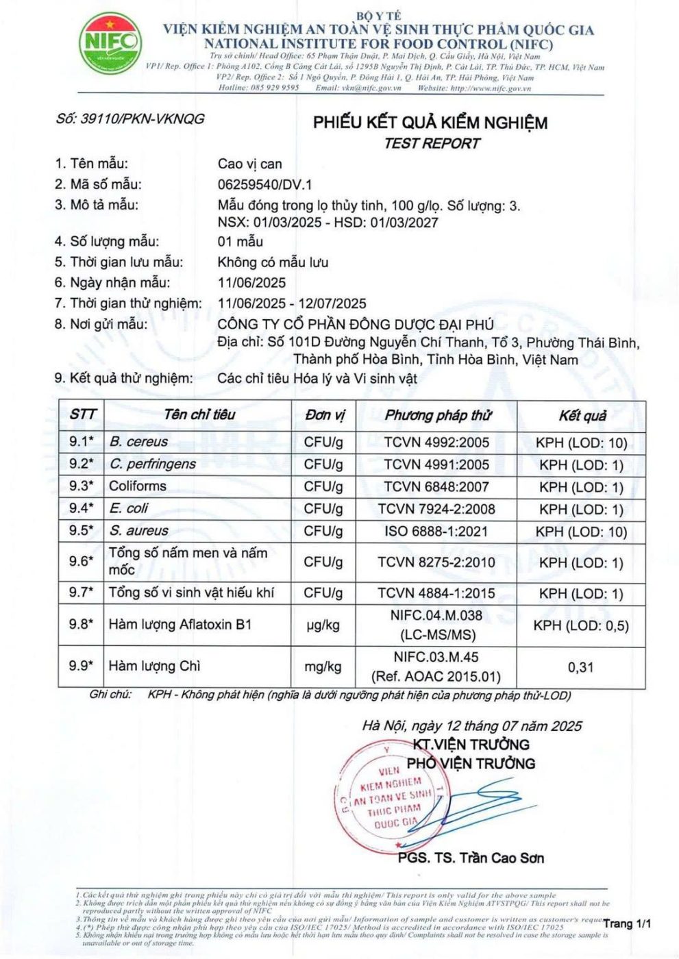Cao Vị Can được kiểm nghiệm an toàn, đảm bảo chất lượng cho người dùng